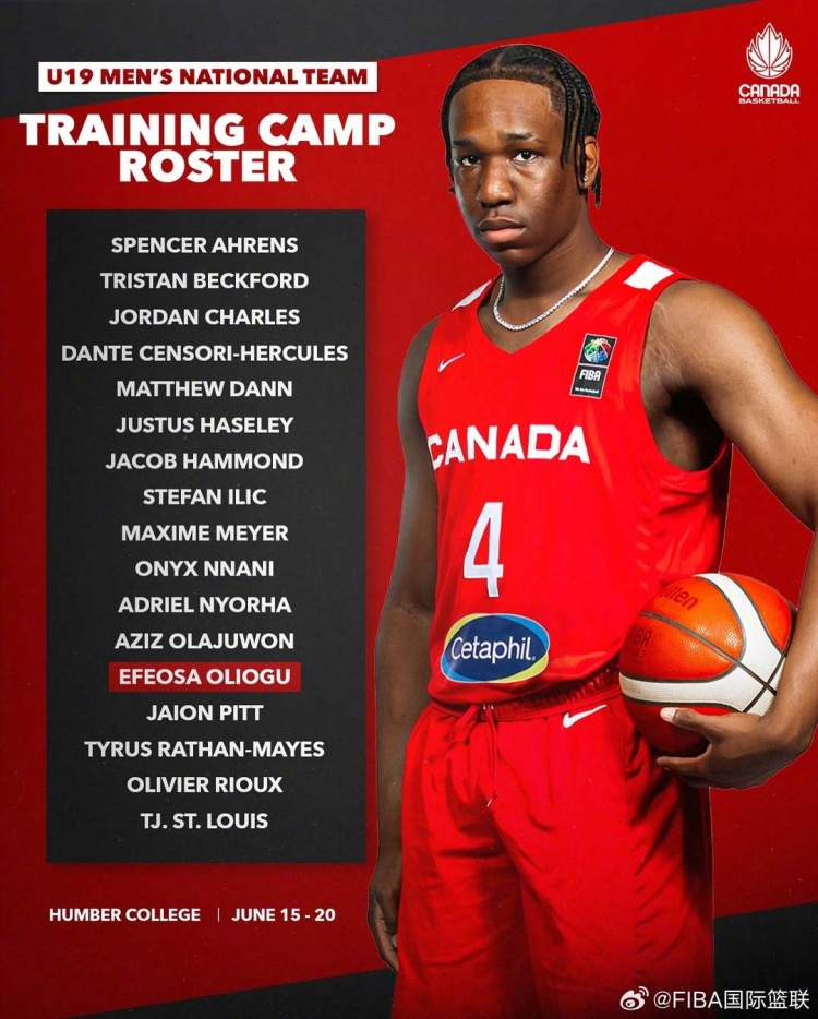 6月18日讯 加拿大U19男篮公布U19世界杯训练营名单,NBA名宿奥拉朱旺之子阿齐兹-奥拉朱旺领衔。
